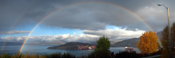View from the Upper Gondola Station Cafe – overlooking Ankenes (left), Narvik (right) and out the Ofoten Fjord.