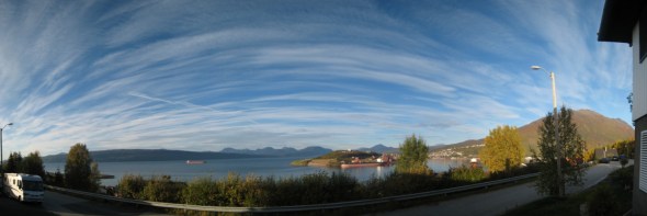 Not every cloud has a silver lining – but they can be beautiful. View from Ankenes towards Narvik and Herjangen (opposite side of the Ofoten Fjord).
