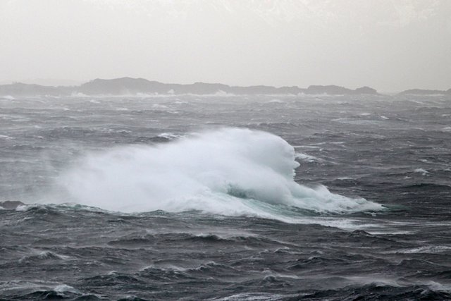 It is blowing hurricane today in Northern-Norway. Hurricane force winds starts at 63 knots – today a weather station measured 109 knots winds (126 miles per hour / 202 kilometers per hour).