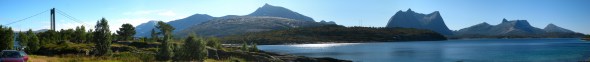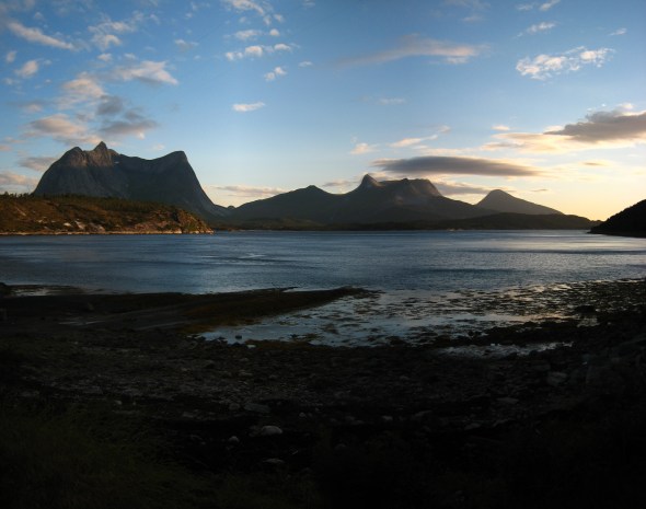 Efjorden south of Narvik - Mountains from the left Stortinden (710 m, 809 m, 847 m), Vindskardet (646 m), Rundtinden (798 m), Teppekiltinden (665m)