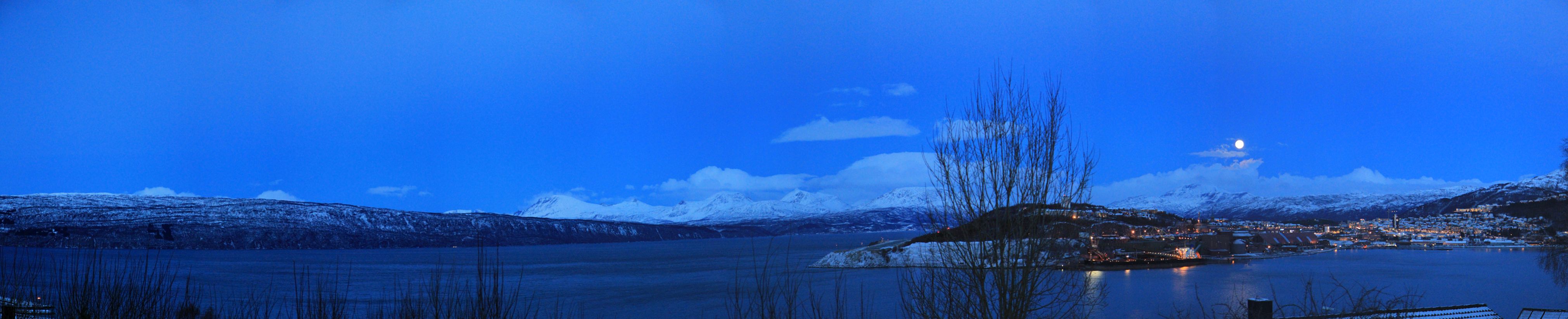 Panorama of Narvik - as light as it gets - no direct sunlight in the winter as the sun never rises above the horizon (click on the image for "The Big Picture")