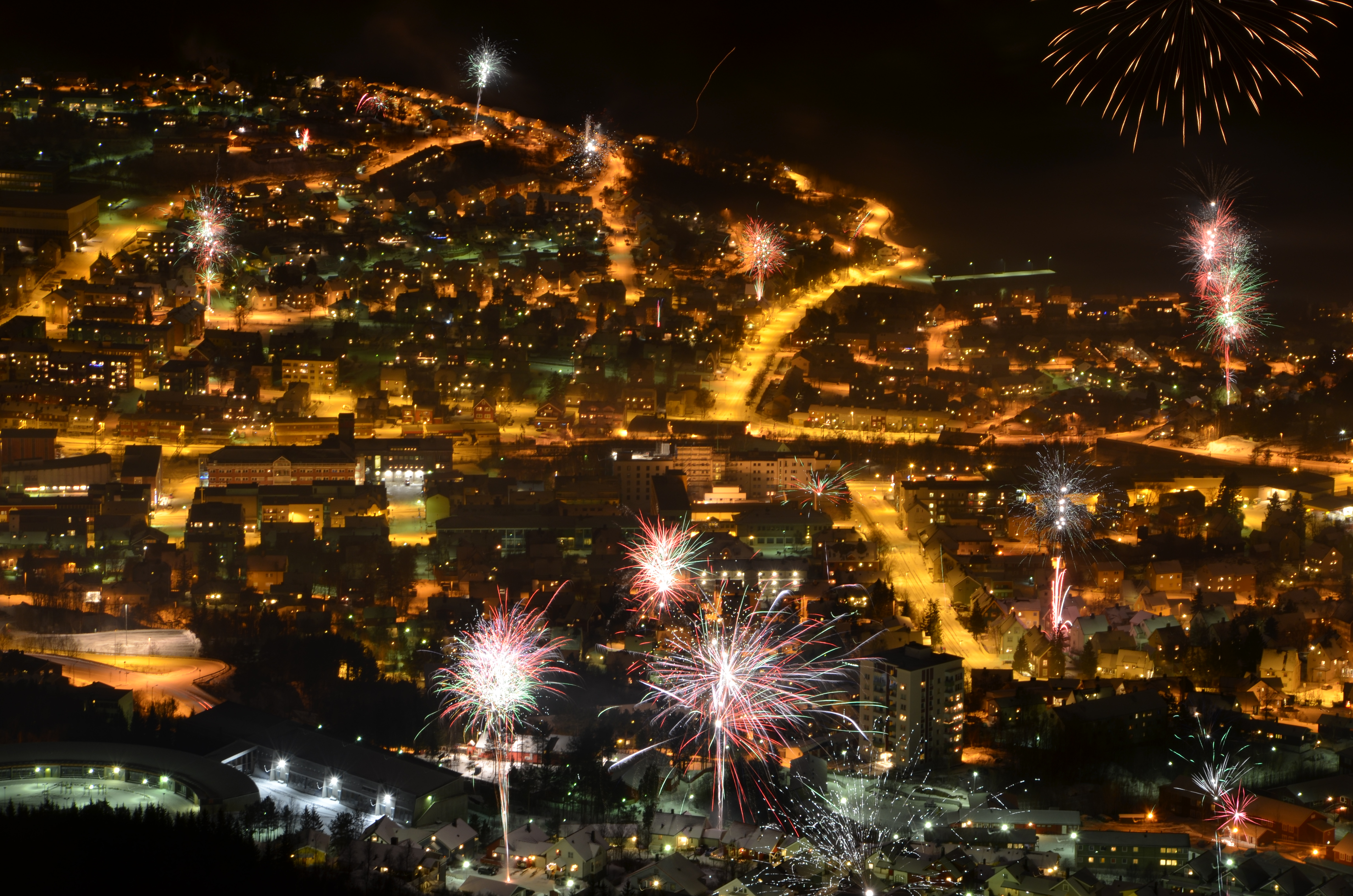 New Years Celebrations in Narvik as seen from the Fagernes Mt.