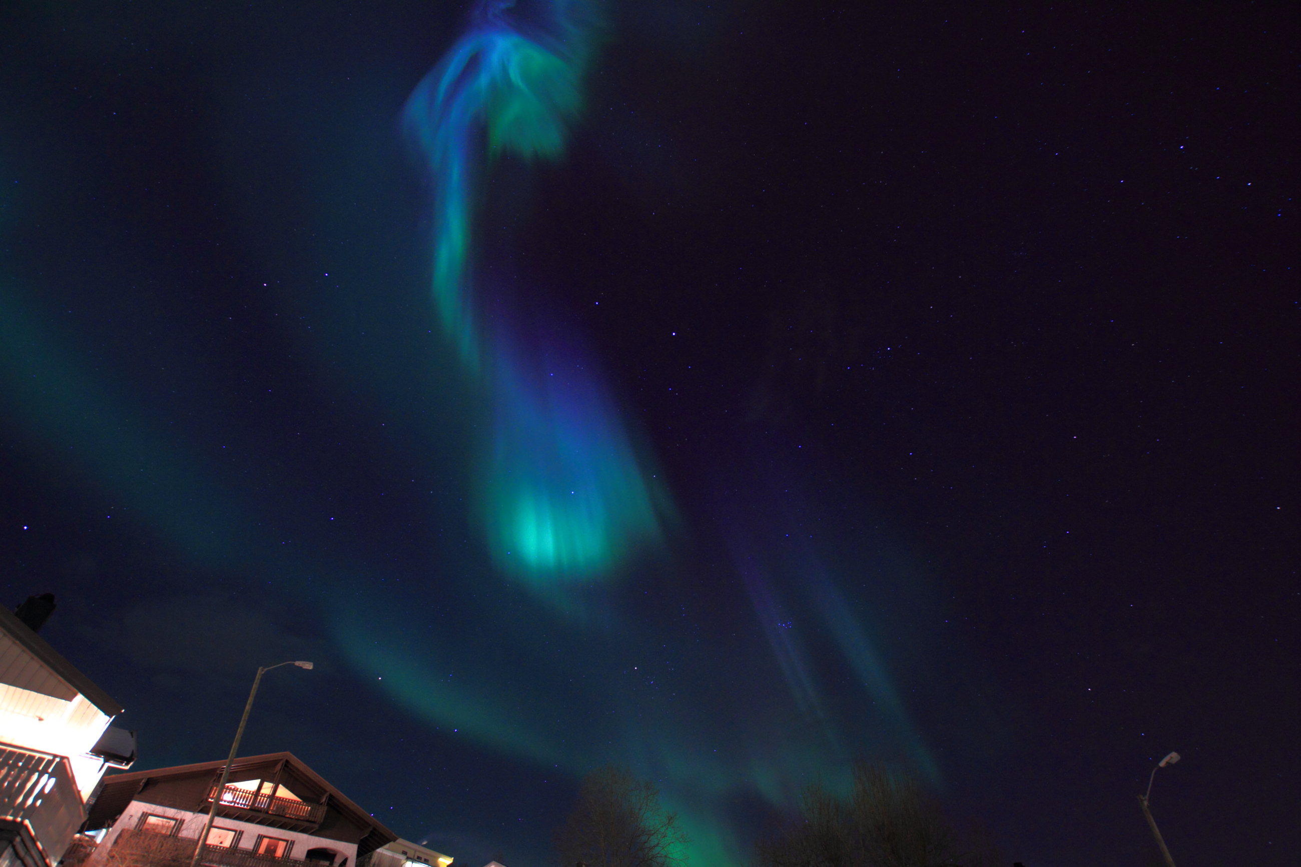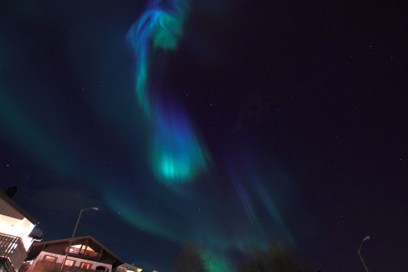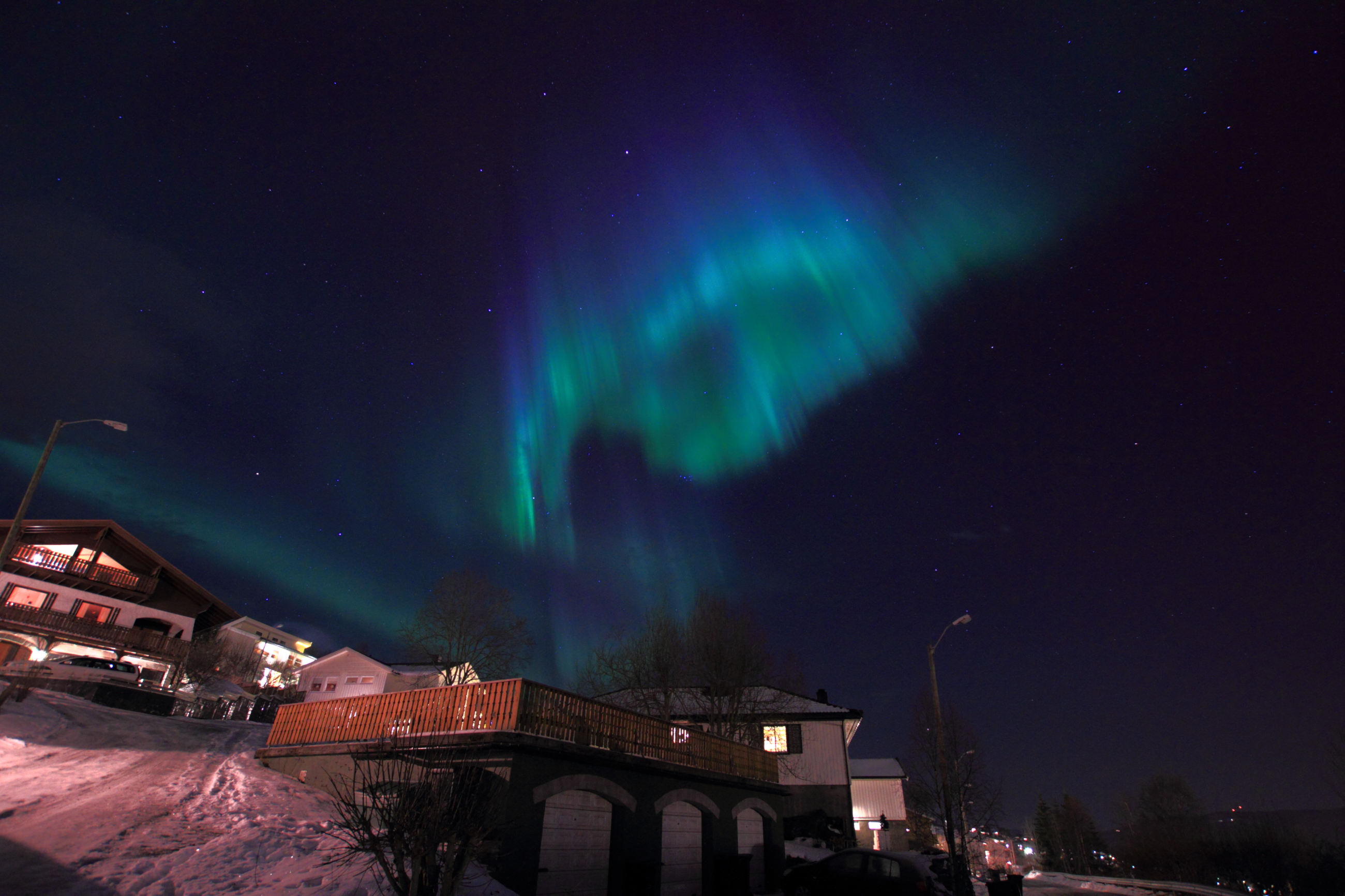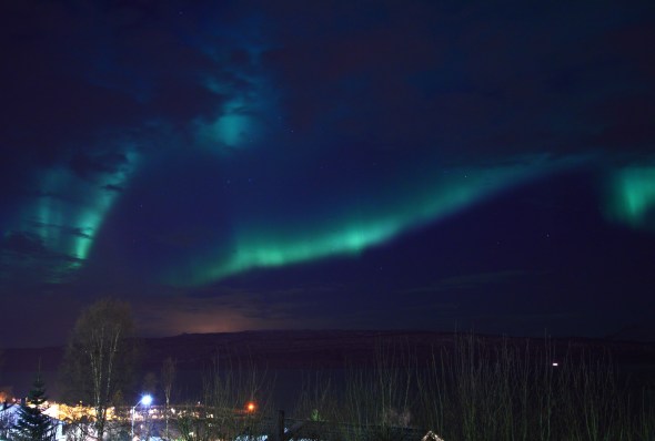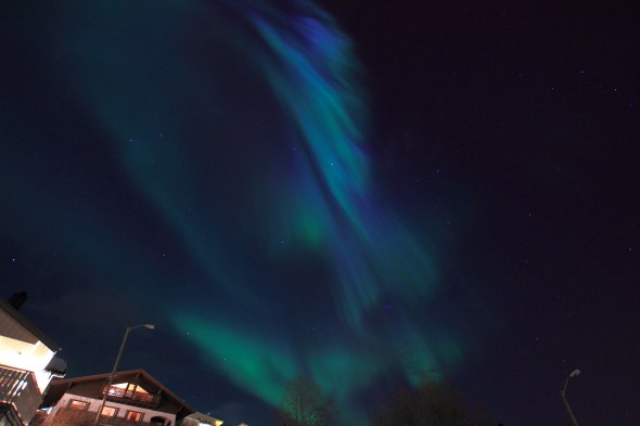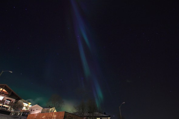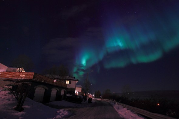I have already shot a few photos tonight and are waiting for more. Unfortunately there is a lot of clouds right now. And since it’s rather cold, people are throwing birch into the fireplaces – like ther was no tomorrow – which produces a lot of smoke particles which scatter the light even more.