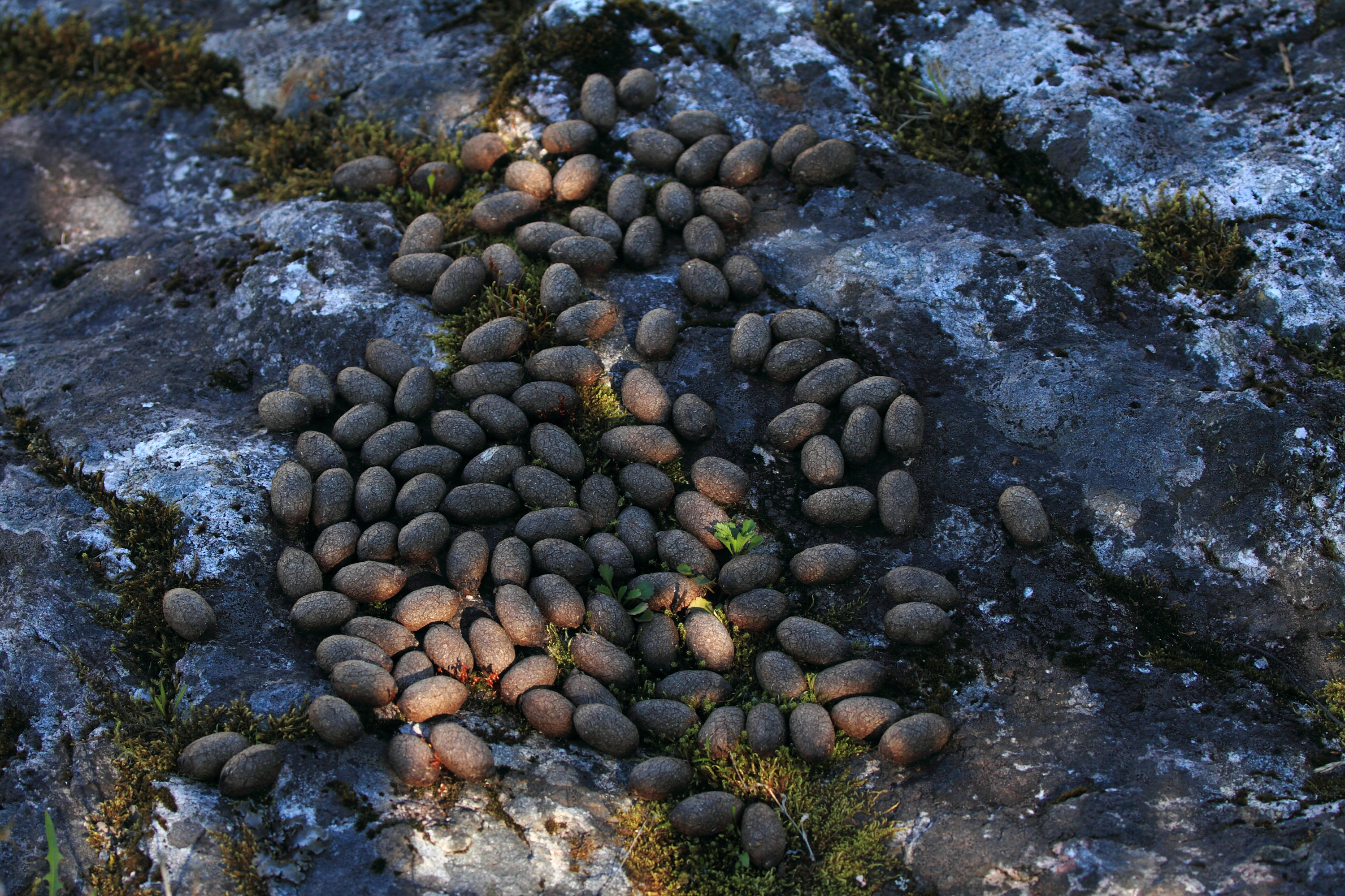 It is moose droppings. And this was just one of the many piles. No need to prune the bushes in the garden. The Norwegian moose takes care of it all – including fertilizing! This seems to be about a month or two old. The fresher the droppings are, the darker color. It depends somewhat on the diet and especially the weather.