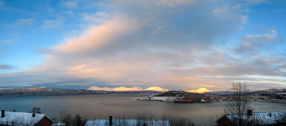 Today s picture, was taken yesterday and I have used a High Dynamic Range software on it, which produced a nice picture of Narvik, but left the Moon looking somewhat strange.